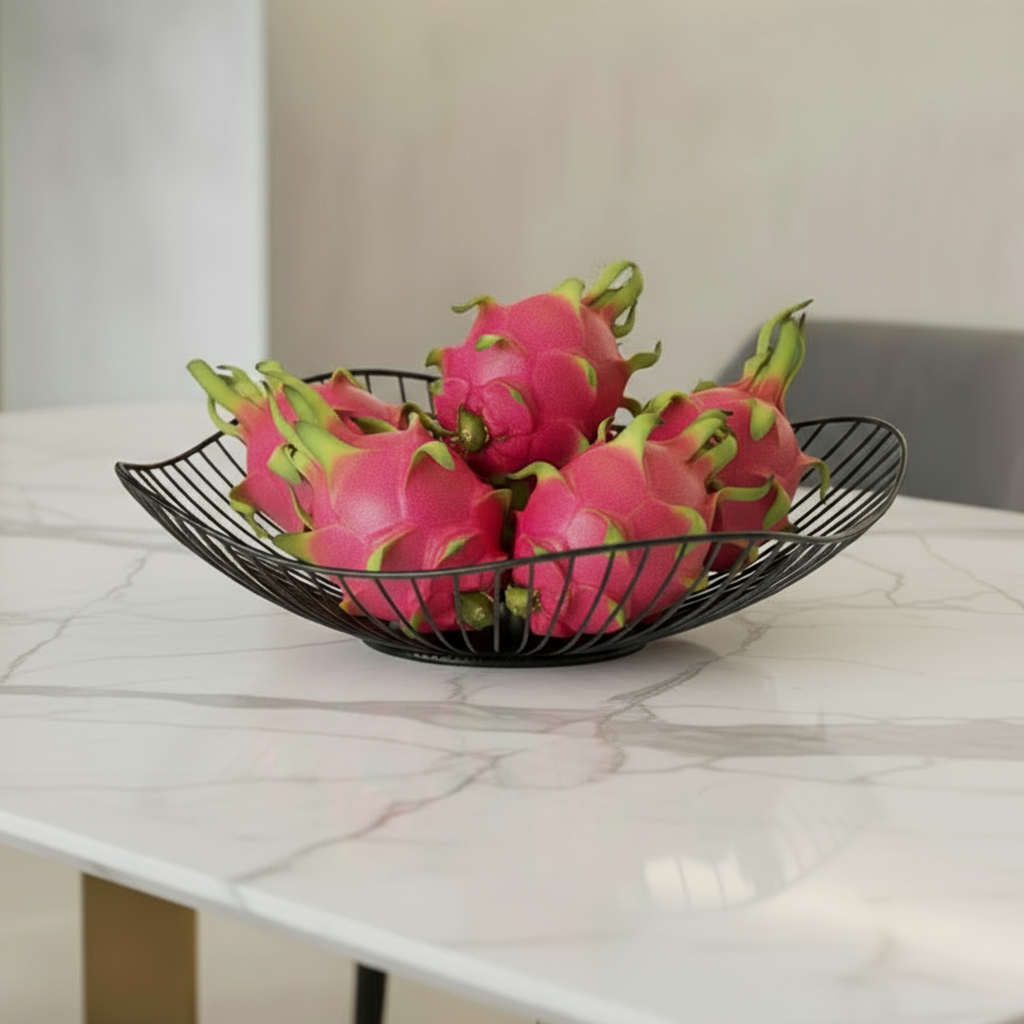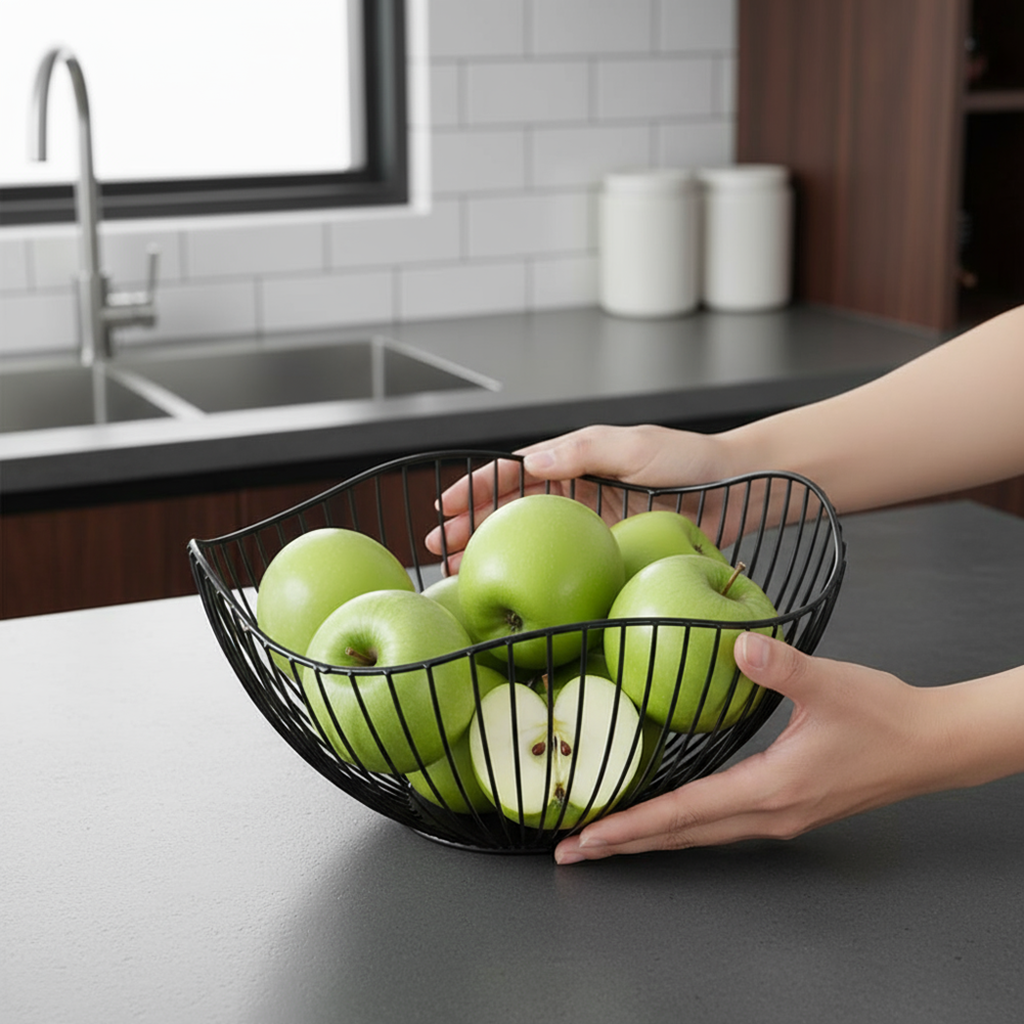 Dê um toque contemporâneo à sua cozinha ou sala de jantar com a Fruteira de Metal Multiuso. Com linhas elegantes e acabamento metálico refinado, esta peça é perfeita para armazenar frutas, pães, vegetais ou até mesmo servir como decoração de mesa.