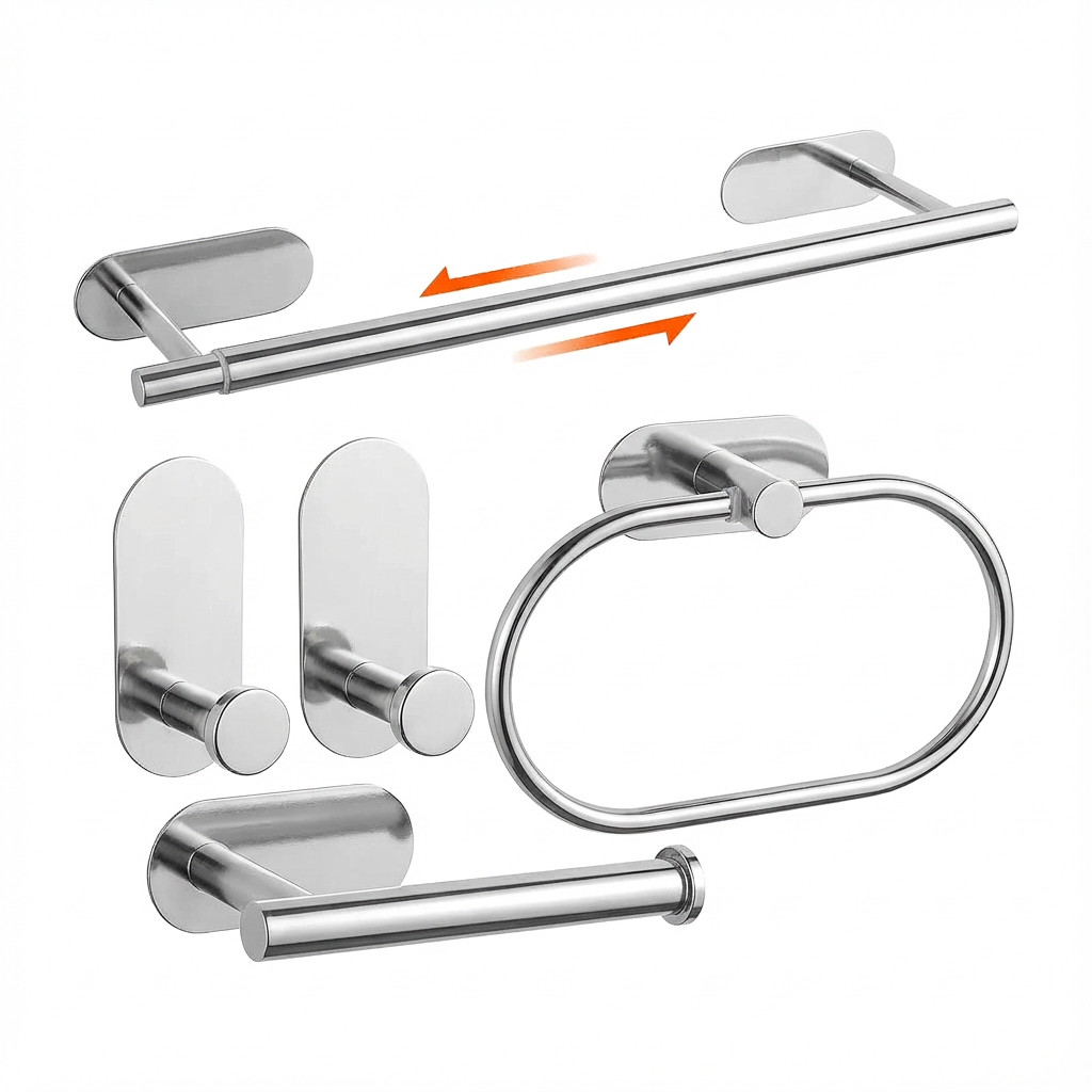 Adicione um toque de elegância e praticidade ao seu banheiro com o Kit Premium de 5 Acessórios para Banheiro, ideal para quem busca organização, resistência e fácil instalação sem a necessidade de furar paredes.