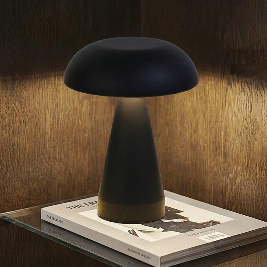 💡 Design Icônico Retrô: Inspirada nas luminárias dos anos 70, a forma de cogumelo confere um toque artístico e nostálgico, ideal para escritórios, quartos ou salas de estar.