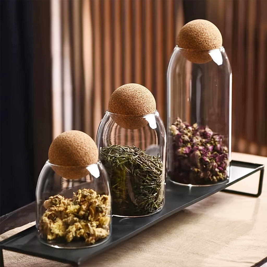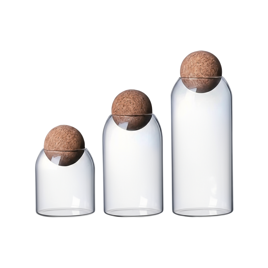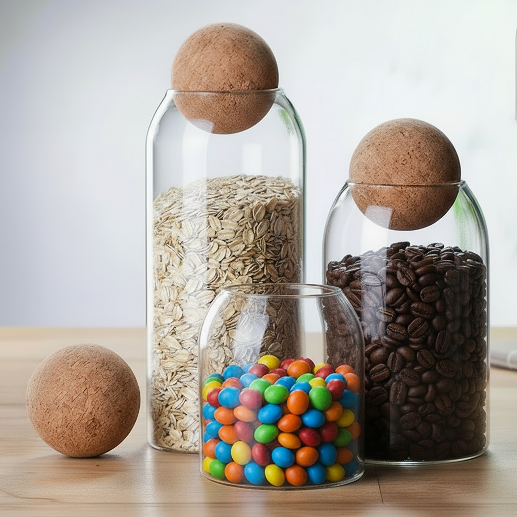 🌿 Conserva por mais tempo – A tampa com esfera de cortiça natural veda perfeitamente, protegendo os alimentos contra umidade, poeira e insetos.