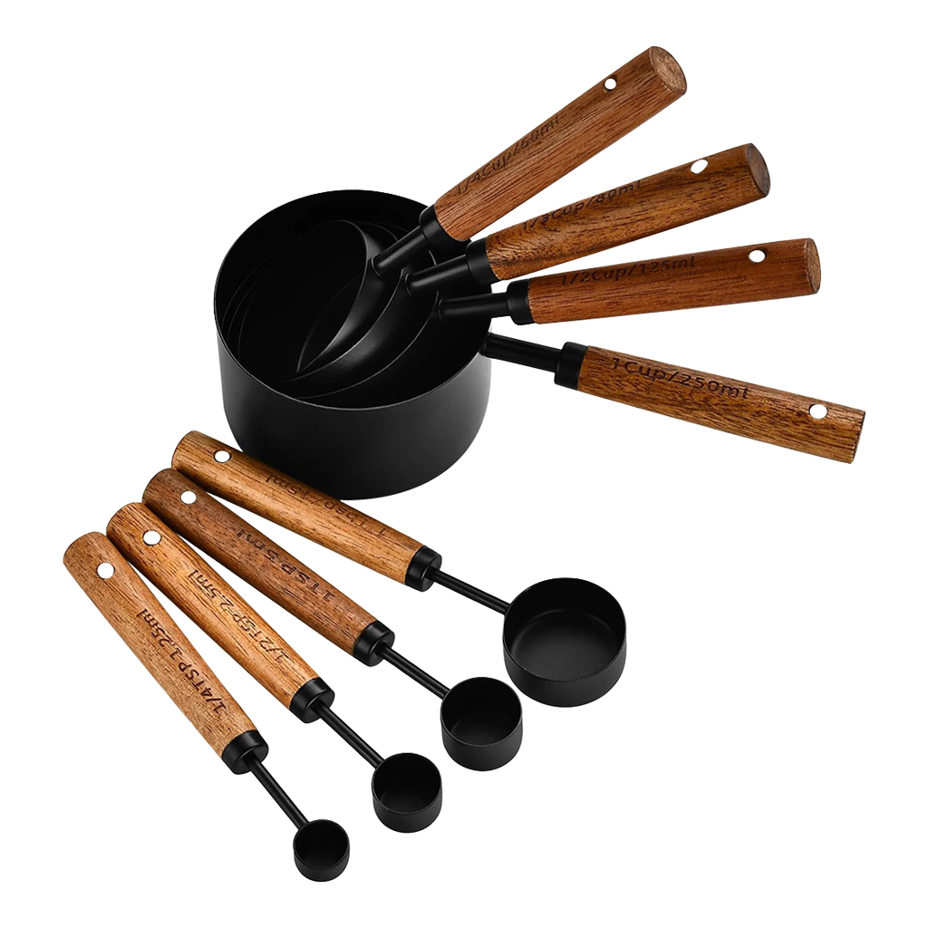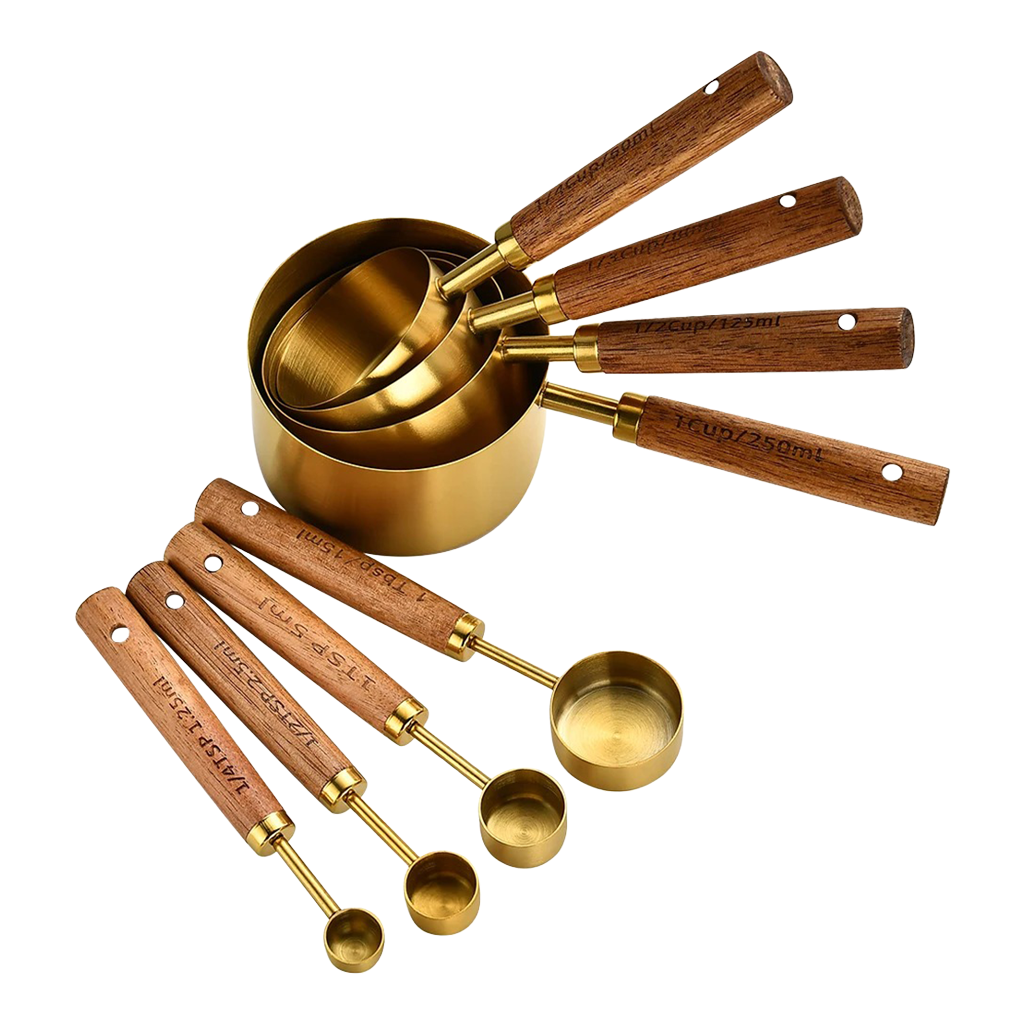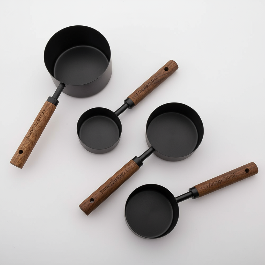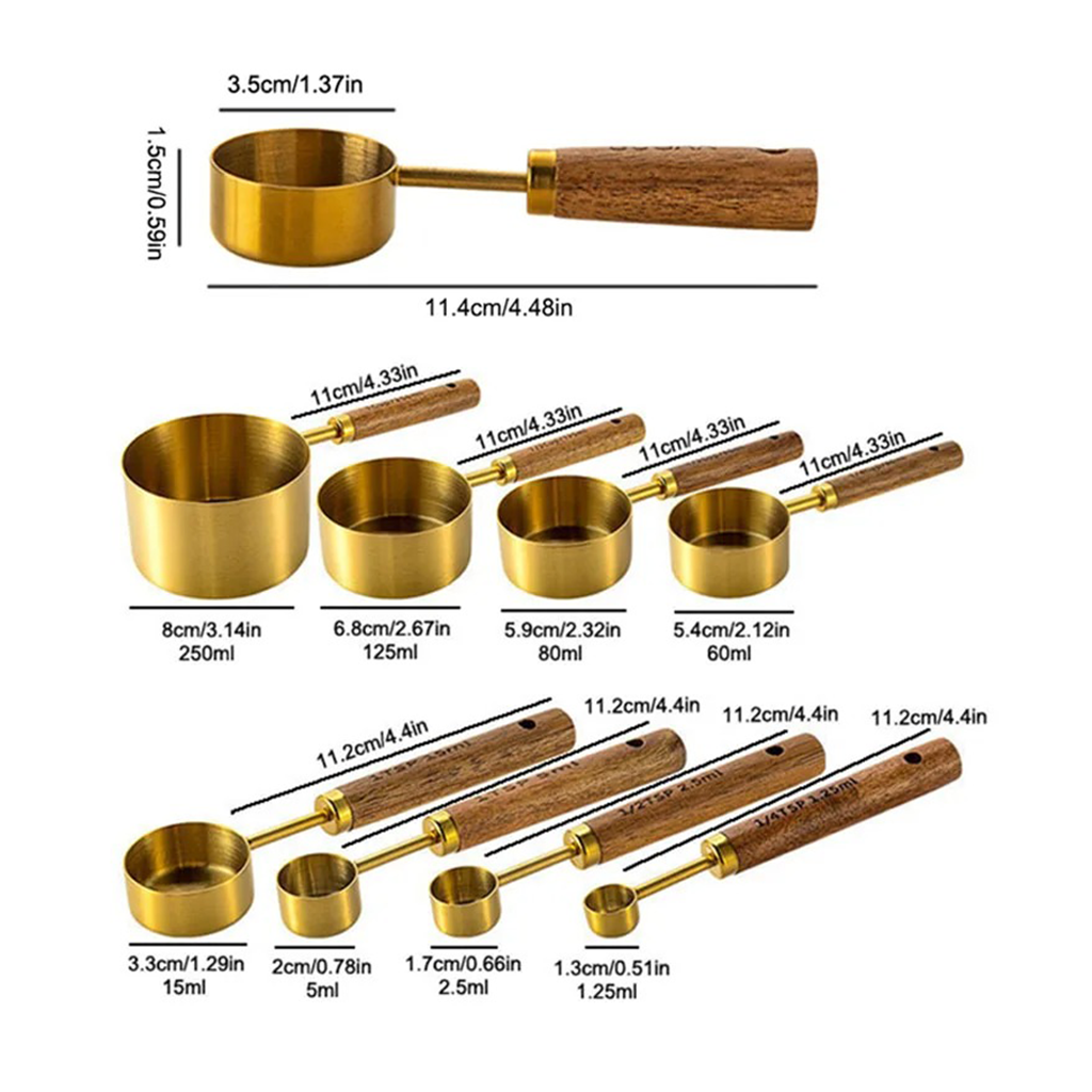 🥄 Conjunto de Medidores em Aço Inox e Cabo de Madeira – Precisão e Elegância na Sua Cozinha