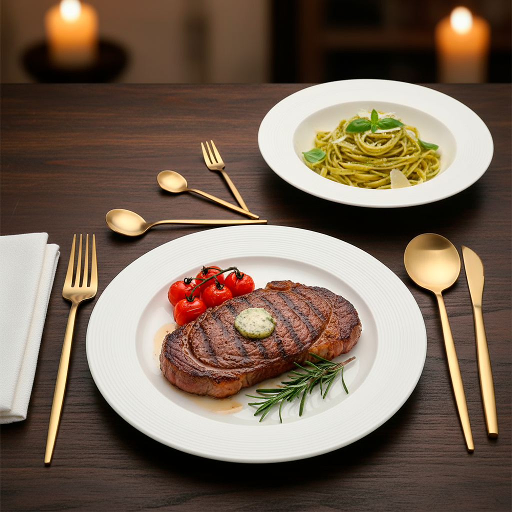 • 💎 Design Moderno e Sofisticado: Linhas limpas, formato ergonômico e brilho elegante que valorizam qualquer mesa — do jantar casual à recepção formal.